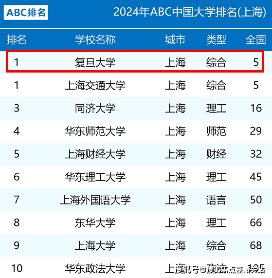 。根据认可度、权威性更高的2024年ABC中国大学排行榜,2024年复旦